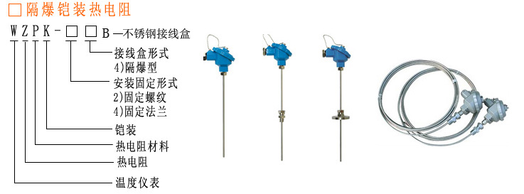隔爆熱電阻和裝配式熱電阻的結構,原理基本相同,所區(qū)別的是,隔爆型產品的接線盒(外殼)在設計上采用防爆特殊的結構,接線盒用高強度鋁合金壓鑄而成,并具有足夠的內部空間、壁厚和機械強度,像膠密封圈的熱穩(wěn)定性均符合******防爆標準,所以,當接線盒內部的爆炸性混合氣體發(fā)生爆炸時,其內壓不會破壞接線盒,而由此產生的熱能不能向外擴散---傳爆。