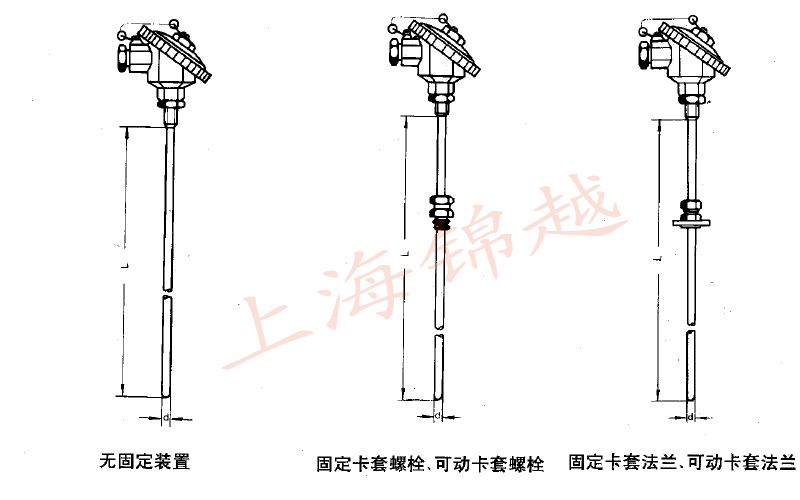 注:1)保護管材料和固定裝置材料:1Cr18Ni9Ti不銹鋼。