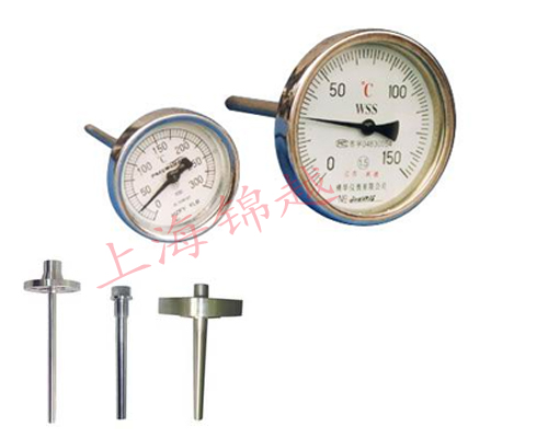 雙金屬溫度計是利用繞制成螺旋管狀的雙金屬片一端被固定,另一自由端與指針針連接,隨著溫度的變化而轉(zhuǎn)動,并帶動指針旋轉(zhuǎn)指示溫度的單針式指示溫度計。