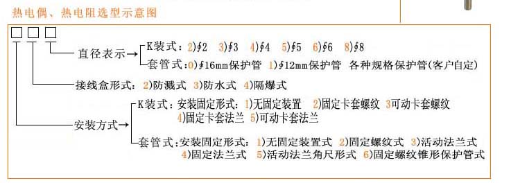 帶熱電偶(阻)溫度變送器選型表示示意圖